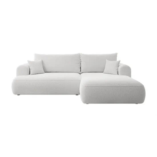 SELSEY Narożnik z funkcją spania Ovo L-kształtny szary z pojemnikiem boucle prawostronny