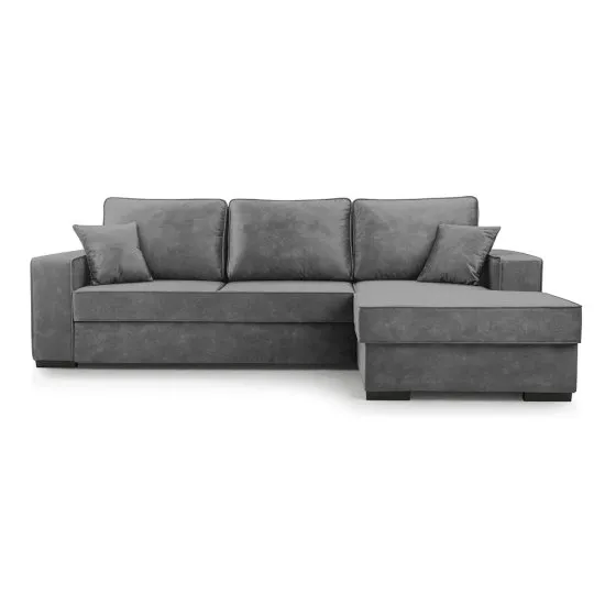 Chcesz urządzić swoj salon w nowoczesnym stylu? Wybierz nasz narożnik z funkcją spania Pazzano! Narożnik Pazzano to modernistyczna bryła, ktora sprawi, że Twoja aranżacja nabierze gracji i wspołczesnego sznytu. Mebel posiada funkcję spania, dzięki czemu szybko przekształcisz go w komfortowe łożko o obszernej powierzchni, na ktorej wyśpią się wygodnie 2 osoby. Pazzano wyposażono także w pojemny schowek na pościel, gdzie przechowasz wszystkie niezbędne tekstylia. Szczegoły produktu: narożnik prawostronny, mebel L-kształtny, wymiary pojemnika: 137x69x22 cm, szerokość podłokietnika: 20 cm, głębokość podłokietnika: 95 cm, długość otomany (do oparcia): 122 cm, 3 poduszki oparciowe w zestawie, mebel obito tkaniną Palladium 16, Palladium to welurowa, przyjemna w dotyku tkanina charakteryzująca się dużą odpornością na ścieranie, zastosowana technologia WATER REPELLENT w znacznym stopniu ogranicza wchłanianie cieczy – rozlany płyn, np. woda, kawa, wino, formuje się w krople i nie wnika do