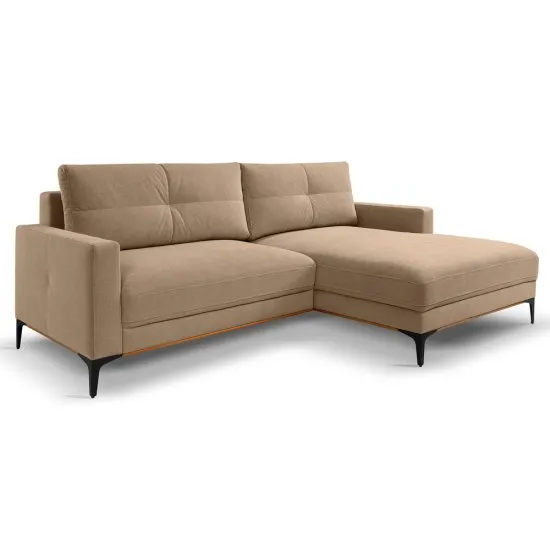 Marzysz o narożniku, ktory zapewni wyjątkowy komfort i świetnie wpasuje się w każde wnętrze? Narożnik Sabbino w kształcie litery L jest idealnym wyborem dla każdego wnętrza. Dzięki możliwości wyboru strony, doskonale dopasuje się do układu Twojego salonu. Funkcja spania typu DL sprawia, że Sabbino w mgnieniu oka przekształca się w wygodne łożko, oferując dodatkową przestrzeń do spania dla gości. Dodatkowo, wbudowany pojemnik na pościel pozwala na przechowywanie kołder i poduszek w łatwo dostępny sposob, co pomaga utrzymać porządek. Tapicerowany tył narożnika Sabbino umożliwia jego ustawienie nawet na środku pokoju, prezentując się rownie efektownie z każdej strony. Zdejmowane poduchy oparciowe z delikatnymi przeszyciami nie tylko dodają mu stylu, ale rownież ułatwiają utrzymanie czystości. Wysokie metalowe nożki nadają narożnikowi nowoczesnego wyglądu i pozwalają na łatwe sprzątanie pod meblem. Siedzenie wykonane ze sprężyn falistych i pianki poliuretanowej zapewnia wyjątkowy komfort