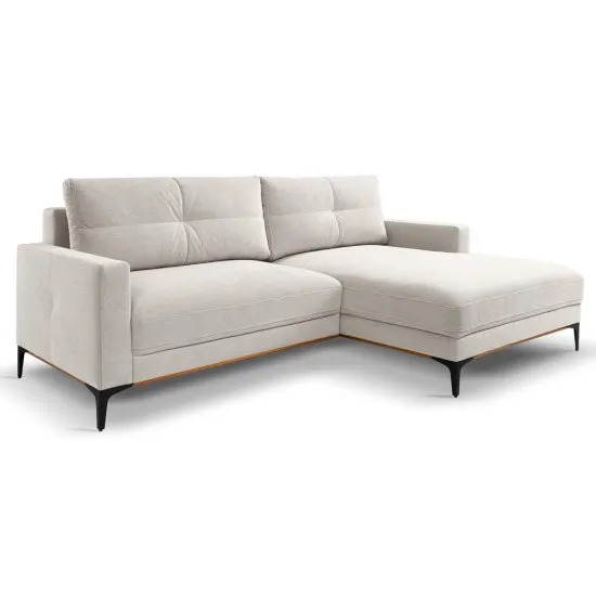 Marzysz o narożniku, ktory zapewni wyjątkowy komfort i świetnie wpasuje się w każde wnętrze? Narożnik Sabbino w kształcie litery L jest idealnym wyborem dla każdego wnętrza. Dzięki możliwości wyboru strony, doskonale dopasuje się do układu Twojego salonu. Funkcja spania typu DL sprawia, że Sabbino w mgnieniu oka przekształca się w wygodne łożko, oferując dodatkową przestrzeń do spania dla gości. Dodatkowo, wbudowany pojemnik na pościel pozwala na przechowywanie kołder i poduszek w łatwo dostępny sposob, co pomaga utrzymać porządek. Tapicerowany tył narożnika Sabbino umożliwia jego ustawienie nawet na środku pokoju, prezentując się rownie efektownie z każdej strony. Zdejmowane poduchy oparciowe z delikatnymi przeszyciami nie tylko dodają mu stylu, ale rownież ułatwiają utrzymanie czystości. Wysokie metalowe nożki nadają narożnikowi nowoczesnego wyglądu i pozwalają na łatwe sprzątanie pod meblem. Siedzenie wykonane ze sprężyn falistych i pianki poliuretanowej zapewnia wyjątkowy komfort