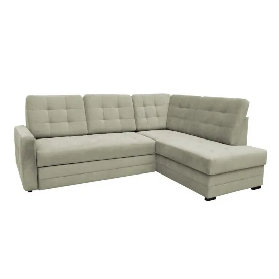 SELSEY Narożnik z funkcją spania Tando L-kształtny beżowy z pojemnikiem welur hydrofobowy prawostronny