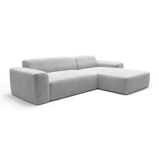 Szukasz nowoczesnego i funkcjonalnego mebla wypoczynkowego do swojego salonu? Narożnik Terrafino będzie doskonałym wyborem! Terrafino to bryła o wspołczesnym kształcie składająca się z dwoch modułow. Posiada praktyczne podłokietniki, na ktorych wygodnie oprzesz ręce czy odstawisz talerzyk lub kubek, a także szeroką i długą otomanę oraz głębokie siedzisko, dzięki czemu skutecznie odpoczniesz po całym dniu. Mebel wyposażono rownież w funkcję spania – dzięki łatwemu w obsłudze mechanizmowi szybko zamienisz narożnik w łożko o obszernej powierzchni spania, na ktorym komfortowo zmieszczą się dwie osoby. Korpus obity jest miękką i przyjemną w dotyku tkaniną o ciekawej strukturze i pięknym kolorze, co nadaje całości stylowego wykończenia i z pewnością zauroczy Twoich gości. Szczegoły produktu: mebel prawostronny, narożnik L-kształtny, tapicerowany tył umożliwia umieszczenie mebla w dowolnej części pomieszczenia, mebel obito tkaniną Onega 7, Onega to miękka i przyjemna w dotyku tkanina