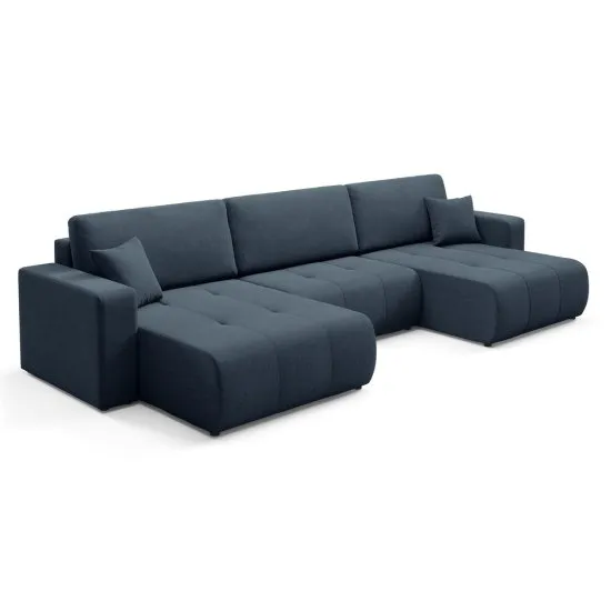 Marzysz o stylowym narożniku, ktory łączy funkcjonalność z elegancją? Narożnik z funkcją spania Wind to idealne rozwiązanie dla Twojego wnętrza! Narożnik Wind to wyjątkowy mebel, ktory doskonale wpasuje się w klasyczne, minimalistyczne oraz nowoczesne aranżacje. Dzięki funkcji spania i pojemnikowi na pościel, staje się nie tylko eleganckim dodatkiem, ale rownież praktycznym rozwiązaniem dla gości. Dodatkowo, tapicerowany tył sprawia, że narożnik prezentuje się znakomicie z każdej strony. Zamow narożnik Wind już dziś i ciesz się komfortem! Szczegoły produktu: mebel wolnostojący z tapicerowanym tyłem, poduszki dekoracyjne w zestawie, siedzenie wykonane ze sprężyn falistych i pianki poliuretanowej, oparcie wykonane z pianki poliuretanowej, funkcja spania z rozkładaniem typu automat DL, pojemnik na pościel, tapicerka z tkaniny Wind 77 w kolorze granatowym, czarne nożki dodające nowoczesnego charakteru, Wind to innowacyjna tkanina typu szenil, ktora doskonale łączy funkcjonalność z