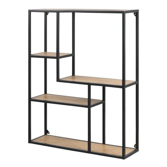 Masz mnostwo drobiazgow, z ktorymi nie wiesz, co robić? Stylowa połka Krapina pomoże Ci na dobre rozwiązać ten problem! Połka Krapina zachwyci każdego swoją oryginalną bryłą, dzięki ktorej stanowi prawdziwe ucieleśnienie najpiękniejszych z panujących obecnie trendow. Mebel wyposażony został w ciekawie się prezentujący stelaż o otwartej strukturze wypełniony rożnej wielkości figurami geometrycznymi. Konstrukcja stanowi stabilne oparcie dla gładkich blatow, na ktorych poustawiać można najrozmaitsze drobiazgi. Zestawienie czerni z drewnianym dekorem doskonale prezentuje się na jasnej ścianie i w połączeniu z dodatkami o wyrazistej barwie, np. rosnącymi w kolorowych doniczkach paprociach czy sukulentach. Konstrukcja świetnie ożywi zatem Twoją przestrzeń, jednocześnie pomagając skutecznie rozprawić się z bałaganem. Szczegoły produktu: połka świetnie nadaje się do kuchni, salonu, gabinetu, a nawet pokoju młodzieżowego, gdzie pomoże zapanować nad drobnymi przedmiotami, zawsze zapewniając do