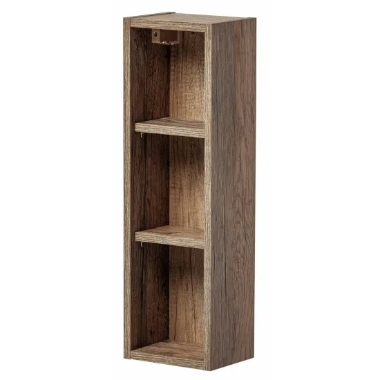 Urządzasz łazienkę swoich marzeń, jednak nie jesteś w stanie podjąć decyzji w kwestii wyboru mebli? Nadchodzimy z pomocą i przedstawiamy wyjątkową kolekcję Olimmi, dzięki ktorej Twoja łazienka zyska wyjątkowego charakteru! Regał łazienkowy Olimmi cechuje się prostą, niewielką formą, ktora z powodzeniem pomieści kosmetyki do makijażu, niewielkie dekoracje czy akcesoria łazienkowe. Mebel wykonany został z płyty laminowanej, w modnym kolorze dąb santa, ktory nadaje całości nietuzinkowego charakteru, w stylu vintage. Wnętrze podzielone zostało na trzy praktyczne połki, ktore pozwolą przechowywać najpotrzebniejsze drobiazgi. Szczegoły: mebel wykonany został z płyty laminowanej 16 mm, ktora jest odporna na wilgoć i zarysowania, co zapewni długie użytkowanie, rodzaj mebla: wiszący, wybarwienie: dąb santa.