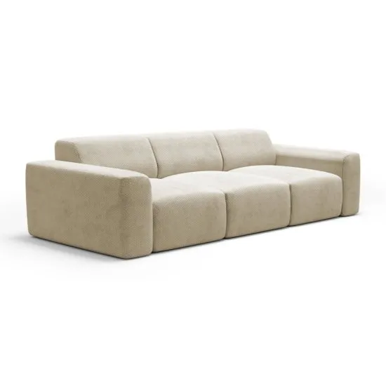 Szukasz mebla wypoczynkowego w modernistycznym stylu? Sofa Terrafino będzie idealnym wyborem! Terrafino to zgrabna bryła w nowoczesnej formie składająca się z trzech modułow. Posiada szerokie, praktyczne podłokietniki, na ktorych wygodnie oprzesz ręce czy odstawisz talerzyk lub kubek, a także głębokie siedzisko, dzięki czemu skutecznie odpoczniesz po całym dniu. Korpus obity jest miękką i przyjemną w dotyku tkaniną o ciekawej strukturze i pięknym kolorze, co nadaje całości stylowego wykończenia i z pewnością zauroczy Twoich gości. Szczegoły produktu: tapicerowany tył umożliwia umieszczenie mebla w dowolnej części pomieszczenia, mebel obito tkaniną Onega 14, Onega to miękka i przyjemna w dotyku tkanina pluszowa, wyrożniająca się wyjątkową strukturą w postaci połączonych ze sobą kuleczek, ktore nadają jej niepowtarzalny wygląd. Materiał jest hydrofobowy, dzięki czemu rozlane płyny nie wnikają w jego głąb, a zostają na powierzchni w formie kropelek pozwalając na łatwe pozbycie się