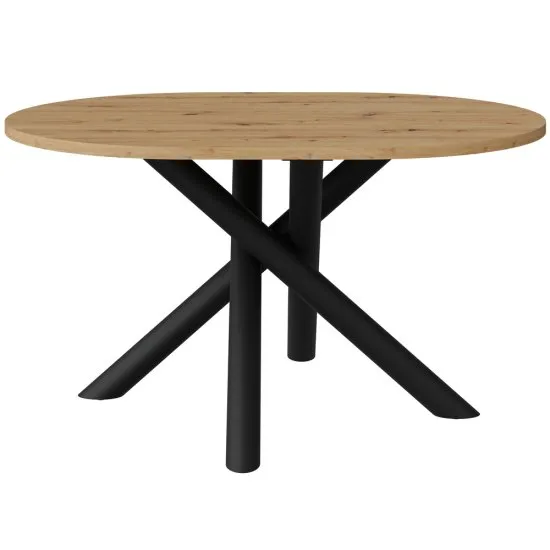 Szukasz wyjątkowego w swoim designie stołu, przy ktorym z przyjemnością spędzisz czas z bliskimi? Odkryj naszą kolekcję Fjorn! Stoł Fjorn charakteryzuje się solidną konstrukcją, a unikalne, krzyżujące się nogi nadają mu nowoczesnego, dynamicznego wyglądu. Dąb Artisan czyli naturalny, wyrazisty blat z widocznym usłojeniem to kwintesencja stylu rustykalnego i skandynawskiego. Wnosi do wnętrz ciepło i autentyczność, podkreślając bliskość natury. Świetnie sprawdzi się w przestrzeniach o jasnej kolorystyce, gdzie stanie się centralnym punktem aranżacji. Stworz wnętrze swoich marzeń – wybierz stoł, ktory podkreśli Twoj styl i ciesz się wspolnymi chwilami z bliskimi! Szczegoły produktu: blat wykonany z płyty laminowanej R20315 RU o grubości 28 mm, czarny metalowy stelaż typu pająk malowany proszkowo, regulowana wysokość w zakresie 74,5 - 76 cm, krawędzie zabezpieczone przed uszkodzeniami mechanicznymi obrzeżem ABS, odcień blatu - Dąb Artisan.
