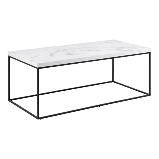 Wprowadź do swojego wnętrza nowoczesny akcent z naszym stylowym stolikiem kawowym Pillys. Ten gustowny stolik posiada prostokątny blat o wymiarach 110x55 cm, ktorego powierzchnia inspirowana jest wyglądem białego marmuru. Delikatne, marmurowe wzory nadają mu luksusowy charakter, idealnie komponując się z rożnymi stylami wnętrzarskimi. Stolik opiera się na czarnych, metalowych nożkach o minimalistycznym designie, ktore zapewniają nie tylko stabilność, ale także podkreślają jego nowoczesny charakter. Proste, a zarazem wyrafinowane linie nożek tworzą zestawienie idealne z marmurowym blatem, nadając stolikowi lekkości i subtelnego uroku. Jego kompaktowe wymiary czynią go wszechstronnym dodatkiem, ktory doda Twojemu wnętrzu niepowtarzalnego uroku i nowoczesnego charakteru. Przenieś swoją przestrzeń na wyższy poziom stylu z naszym stolikiem kawowym Pillys. Szczegoły produktu: prostokątny blat 110x55 cm, czarna podstawa w formie ramy ze stali zapewnia nowoczesny wygląd, czarna matowa