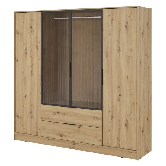 SELSEY Szafa czterodrzwiowa Kelly z witryną i dwiema szufladami 206 cm dąb artisan