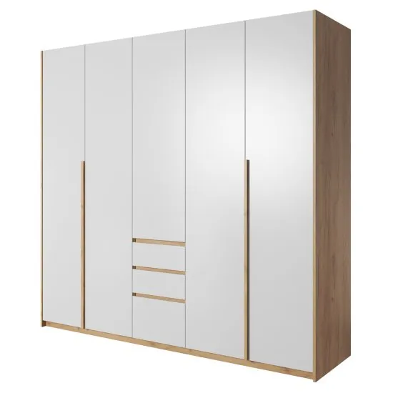Nie masz pomysłu na zaaranżowanie sypialni? Cenisz sobie funkcjonalność i wygodę? Idealnym rozwiązaniem jest kolekcja Grejs - to nowoczesne meble, ktore nadadzą charakteru Twojej sypialni i wprowadzą do niej niesamowity klimat. Szafa Grejs wykonana została z solidnej płyty laminowanej, ktora jest odporna na wilgoć oraz zarysowania. Dzięki stonowanej kolorystyce dębu craft złotego z klasyczną bielą oraz matowemu wykończeniu sypialnia będzie sprawiała wrażenie przytulnej i nastrojowej, co korzystnie wpłynie na relaks po ciężkim dniu w pracy. Mebel wyposażony został w system otwierania drzwi przesuwno - harmonijkowy WingLine. To innowacyjny system firmy Hettich, dzięki ktoremu szafa prezentuje się wyjątkowo i nowocześnie, nawet przy częściowo uchylonych drzwiach. Jest to doskonała alternatywa dla tradycyjnych drzwi przesuwnych - pozwoli z łatwością otworzyć tylko tę część szafy, ktora w danej chwili jest nam potrzebna. Szafa, dzięki odpowiednio zagospodarowanemu wnętrzu, z pewnością