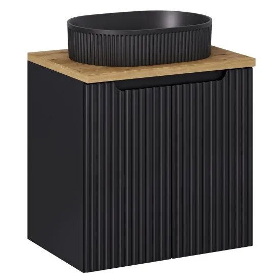 Szukasz idealnych mebli do swojej łazienki, ktore zachwycą Cię swoim wykonaniem? Kolekcja Novia to odpowiedź na Twoje potrzeby! Kolekcja mebli łazienkowych Novia to połączenie nowoczesnego designu i ponadczasowej elegancji. Te stylowe meble łazienkowe, wykonane z wysokiej jakości materiałow, zachwycają swoją estetyką oraz praktycznością. Charakteryzują się wyrafinowanym połączeniem naturalnego odcienia dębu z matową czernią, dodatkowo stylowy design z ryflowanym frontem nie tylko nadaje im wyjątkowego szyku, ale także wprowadza subtelny efekt przestrzenności i dynamiki. To detal, ktory z pewnością przyciąga wzrok i czyni je unikalnymi. Kolekcja obejmuje kilka rożnych konfiguracji, dzięki czemu możesz dobrać zestaw idealnie dopasowany do wielkości i układu Twojej łazienki. Od minimalistycznych szafek po komplety ze słupkiem łazienkowym i umywalkami – każdy znajdzie coś dla siebie. Meble idealnie wpasują się w nowoczesne wnętrza, loftowe przestrzenie, a także minimalistyczne aranżacje, w