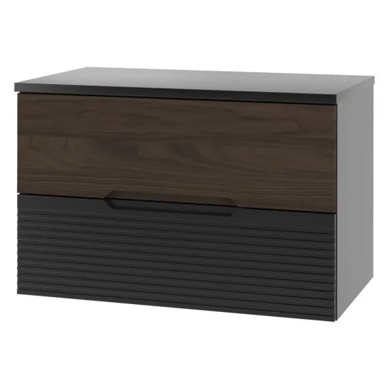 SELSEY Szafka łazienkowa z blatem Avella 80 cm ryflowany front czarny mat / orzech