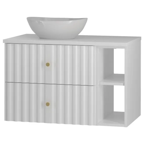 SELSEY Szafka łazienkowa z umywalką nablatową i półkami Aqua 80 cm ryflowane fronty biały mat