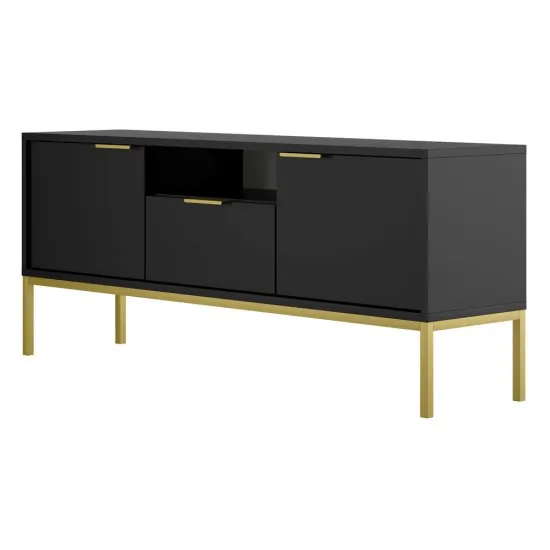 SELSEY Szafka RTV dwudrzwiowa Diargo 135 cm z szufladą i wnęką czarna na złotym stelażu