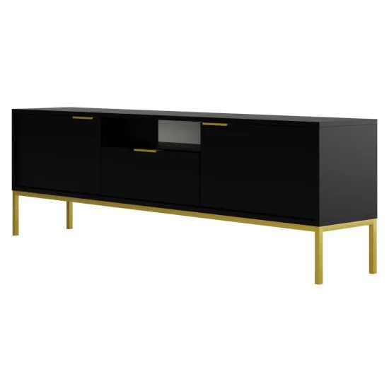 SELSEY Szafka RTV dwudrzwiowa Diargo 175 cm z szufladą i wnęką czarna na złotym stelażu