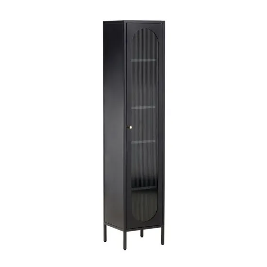 Stworzenie funkcjonalnego i uporządkowanego domu stało się prostsze dzięki kolekcji witryn Bequiti! Witryny metalowe Bequiti to nie tylko praktyczne rozwiązanie do przechowywania, ale także wyraziste dzieło, łączące w sobie styl i funkcjonalność. Ta wykonana ze stali witryna dodaje charakterystycznego uroku, doskonale wpisując się zarowno w nowoczesne, jak i tradycyjne wnętrza. Jej elegancki czarny kolor nadaje pomieszczeniu ponadczasowego charakteru, świetnie komponując się z wystrojem Twojego domu. Szczegoły produktu: wykonanie z solidnego metalu, zapewniającego trwałość i niezawodność, maksymalne obciążenie połki: 25 kg, elegancka czerń dodaje witrynie ponadczasowego charakteru, drzwiczki wykonane ze szkła falistego nadają elegancki sznyt i pozwalają na ukrycie przedmiotow na połkach, liczba drzwi: 1, liczba połek: 4.