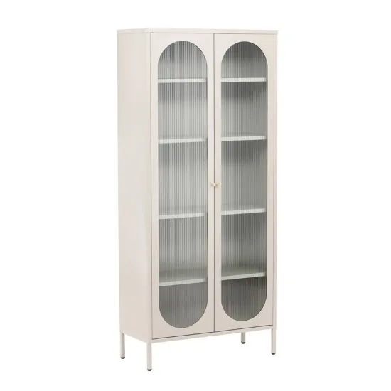 Stworzenie funkcjonalnego i uporządkowanego domu stało się prostsze dzięki kolekcji witryn Bequiti! Witryny metalowe Bequiti to nie tylko praktyczne rozwiązanie do przechowywania, ale także wyraziste dzieło, łączące w sobie styl i funkcjonalność. Ta wykonana ze stali witryna dodaje charakterystycznego uroku, doskonale wpisując się zarowno w nowoczesne, jak i tradycyjne wnętrza. Jej elegancki beżowy kolor nadaje pomieszczeniu ponadczasowego charakteru, świetnie komponując się z wystrojem Twojego domu. Szczegoły produktu: wykonanie z solidnego metalu, zapewniającego trwałość i niezawodność, maksymalne obciążenie połki: 25 kg, elegancki beż dodaje witrynie ponadczasowego charakteru, drzwiczki wykonane ze szkła falistego nadają elegancki sznyt i pozwalają na ukrycie przedmiotow na połkach, liczba drzwi: 2, liczba połek: 4.