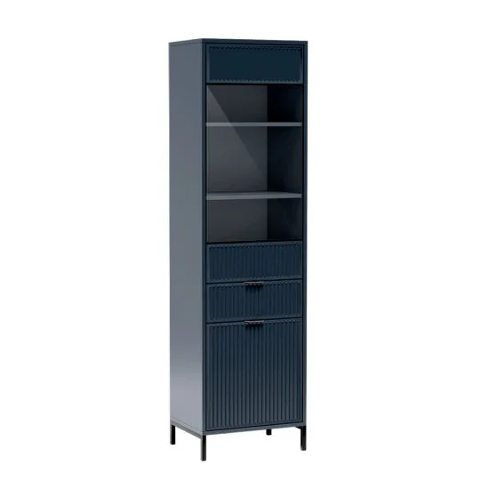 Witryna jednodrzwiowa Passimo - połączenie funkcjonalności, nowoczesnego stylu i elegancji, ktorej nie będziesz mogł się oprzeć! Minimalistyczna elegancja sprawi, że witryna stanie się nie tylko praktycznym meblem, ale rownież designerskim akcentem w Twoim domu. Pojemna szuflada witryny to doskonałe rozwiązanie dla tych, ktorzy cenią sobie porządek i praktyczne rozwiązania. System push to open umożliwia otwarcie drzwi lekkim naciśnięciem, co dodatkowo podnosi komfort użytkowania. Pozwol, by mebel stał się wyrazem Twojego indywidualnego gustu i przestrzenią, ktora inspiruje! Szczegoły produktu: funkcja cichy domyk, funkcja push to open metalowe nożki w czarnym kolorze 12cm, korpus witryny wykonany został z płyty laminowanej 18 mm EGGER Indygo U 599, szerokość mebla 54cm, kolor: ciemny granat + miedziane uchwyty