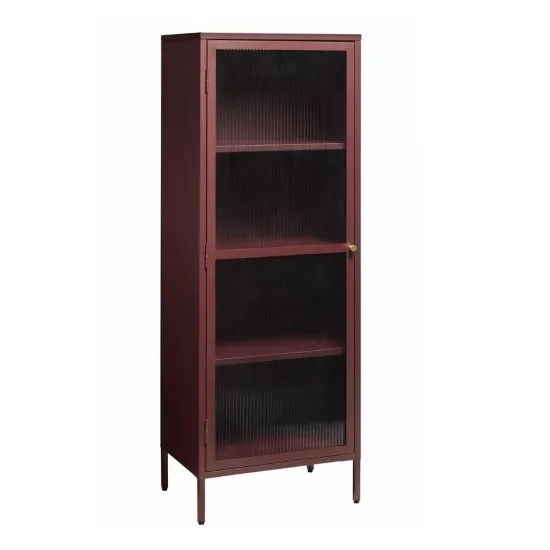 SELSEY Witryna metalowa jednodrzwiowa Avensunly 160 cm z przeszkleniem bordowa