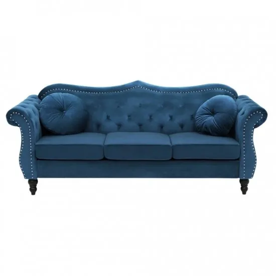 Sofa 3-osobowa ciemnoniebieska SKIEN. Ciemnoniebieska sofa SKIEN w stylu skandynawskim, to trzyosobowa sofa wykonana z myślą o nowoczesnych wnętrzach, urządzonych w stylu minimalistycznym, skandynawskim, jak i industrialnym. Jest to jednoznaczne z prostymi kształtami, ktore zapewniają dużą dozę uniwersalności, jak i utrzymaniem konstrukcji w stonowanej kolorystyce.Wymiary sofy SKIEN dostarczają dużą dozę komfortu podczas wypoczynku z rodziną lub przyjaciołmi. Wewnątrz mebla znajdują się sprężyny faliste oraz pianka T30 - za ich sprawą siedziska są miękkie, a przy tym odporne na duże obciążenia. Sofy designerskie, z kolekcji SKIEN wyposażone są w wysokie podłokietniki oraz oparcie, w ktorego wnętrzu znajdują się pasy elastyczne, zapewniające wysoki komfort. Aby podkreślić skandynawski charakter, wąskie nogi sofy wykonano z naturalnego drewna.Cechy - Sofa 3-osobowa SKIENprosty, skandynawski designkolor ciemnoniebieski3-osobowa - szerokość 200 cmsolidna konstrukcja (drewno, płyta)nogi z naturalnego drewnawysokie oparcie (68 cm)boki o wysokości 73 cm (pełnią funkcję podłokietnikow)wypełnienie pianką P25 + T30materiał: tkanina Monolith - odporna na wchłanianie płynow, trudne plamystworzona do nowoczesnych wnętrz Wykorzystanie sofy we wnętrzach.Sofy designerskie, z kolekcji SKIEN bez dwoch zdań warto wstawić do wnętrza urządzonego w stylu skandynawskim, minimalistycznym, industrialnym lub inspirowanym nurtem lat 60-tych.Jeśli poszukujesz kompletu mebli do salonu, zwroć uwagę na zestawienie ciemnoniebieskiej sofy 3-osobowej z fotelem SKIEN lub sofy 2-osobowej. Taki wybor wprowadzi do Twojego wnętrza jednolitą, spojną atmosferę. Przy decyzji wstawienia jednej, obszernej sofy, warto zestawić ją z dużym, komfortowym fotelem, w skandynawskim stylu.Subtelnie designerska ciemnoniebieska sofa 3-osobowa Skien wykonana z myślą o skandynawskich klimatach minimalistycznych loftach czy też nawiązujących do lat 60-tych retro przestrzeni. Jeśli więc jesteś na etapie poszukiwań niebanalnego rozwiązania meblowego do intrygującej stylizacji swojego salonu Skien to strzał w dziesiątkę! Ergonomiczna forma sofy:Wymiary sofy dostarczają dużą dozę komfortu podczas wypoczynku z rodziną lub przyjaciołmi. Wewnątrz mebla znajdują się sprężyny faliste oraz pianka T30 za ich sprawą siedziska są miękkie, a przy tym odporne na duże obciążenia. Wysokie oparcie dostarcza plecom odpowiednie podparcie, natomiast wysokie boki sofy, pełnią funkcję podłokietnikow. Wysoko osadziona konstrukcja sofy designerskiej, na drewnianych nogach jest rownież praktycznym rozwiązaniem - pozwala to na bezproblemowe utrzymanie porządku we wnętrzu. głębokość 83 cmKolekcja SKIENKolor CiemnoniebieskiMateriał Welur Tkanina MonolithMateriał nog naturalne drewnoStyl skandynawskiSzerokość 200 cmWypełnienie Pianka T30 Pianka P25Wysokość 91 cmWysokość oparcia 68 cmWysokość podłokietnikow 73 cmZawieszenie oparcia Pasy elastyczneZawieszenie siedziska Sprężyny faliste