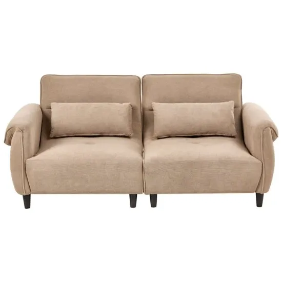 Ta trzyosobowa sofa doskonale sprawdzi się w salonie jako miejsce do odpoczynku. Wygodne siedzisko, miękkie oparcie i dodatkowe poduszki zapewniają pełen komfort. Obita trwałą, tkaniną z powłoką odpychającą wodę jest przyjemna w dotyku oraz zachwyca ponadczasowym stylem, ktory pasuje zarowno do nowoczesnych, jak i klasycznych wnętrz.głębokość 85 cmKolor JasnobrązowyLiczba osob 3Materiał tkaninaSzerokość 192 cmWysokość 84 cm
