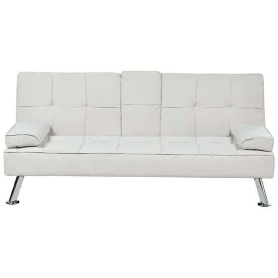 Sofa rozkładana Roxen jasnobeżowy.Szukasz praktycznej, a zarazem designerskiej sofy? Model Roxen od niemieckiej marki Beliani będzie strzałem w dziesiątkę! Wyposażono ją w intuicyjny mechanizm rozkładania, więc w zaledwie kilka sekund zamienisz ją w komfortowe miejsce do spania. Obicie wykonane zostało z poliestru w stonowanej, jasnobeżowej kolorystyce, dzięki czemu bez najmniejszego problemu wpasuje się w niemal każde wnętrze. Wypełnienie z pianki i plecy dodatkowo wspierane pasami – zapewnią najwyższy poziom wygody nawet w trakcie wielogodzinnego użytkowania. Subtelną całość dopełniają smukłe, metalowe nogi w srebrnym odcieniu. Sofa Roxen będzie praktycznym i stylowym dodatkiem zarowno do prywatnych wnętrz, jak i komercyjnych typu poczekalnia, czy biuro. Cechy - sofaobrot o 360 stopnisolidna podstawa z polerowanego metalustyl glamourmiękka w dotyku tkanina w jasnoszarym kolorzegustowne pikowaniewysokie, zakrzywione podłokietniki głębokość 81 cmKolor Jasny beżowyMateriał poliesterMateriał nog MetalMateriał obicia poliesterObrot 360Pikowanie TakPodstawa polerowany metalStyl glamourSzerokość 168 cmWypełnienie piankaWysokość 77 cm