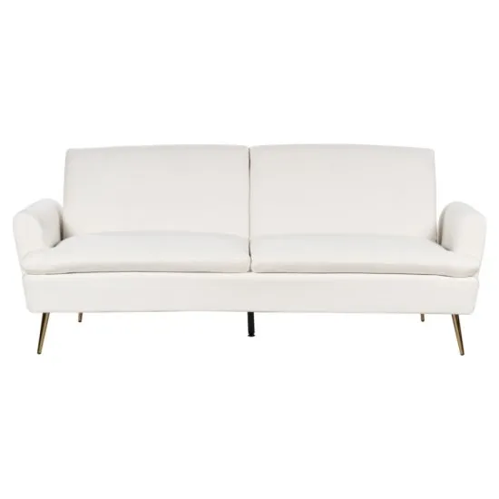 Sofa rozkładana VettreNowoczesna i funkcjonalna sofa Vettre wprowadzi elegancję i komfort do Twojego wnętrza. Wykonana z wysokiej jakości, miękkiego weluru w odcieniu złamanej bieli, sofa łączy w sobie styl i wygodę. Sofa jest rozkładana, co pozwala na łatwe przekształcenie jej w wygodne miejsce do spania dla gości. Jej prosta forma z delikatnie zaokrąglonymi krawędziami nadaje jej nowoczesny i elegancki wygląd. Wymiary sofy to 210 cm szerokości, 84 cm głębokości i 88 cm wysokości. Po rozłożeniu, wymiary powierzchni do spania wynoszą 181 cm na 105 cm, co zapewnia komfortowe miejsce do wypoczynku. Sofa jest wsparta na niskich, metalowych nogach, ktore dodają jej lekkości i nowoczesnego charakteru. Subtelne nożki doskonale komponują się z eleganckim designem sofy. Dzięki eleganckiemu welurowi i neutralnej kolorystyce, sofa Vettre doskonale wpasuje się w rożnorodne style wnętrz, dodając im szyku i klasy. Może być wykorzystywana zarowno w salonie, jak i w pokoju gościnnym. głębokość 84 cmGłębokość spania 105 cmKolor Złamana bielMateriał WelurMateriał nog MetalSzerokość 210 cmSzerokość spania 181 cmWysokość 88 cm