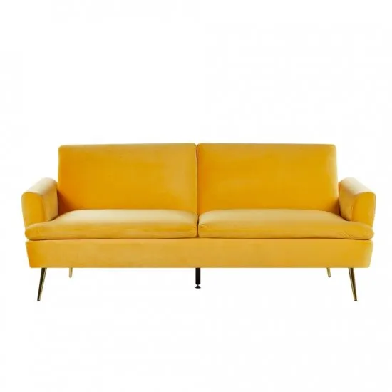 Szukasz praktycznej, a jednocześnie stylowej sofy? Model VETTRE z pewnością spełni Twoje oczekiwania! To elegancka, rozkładana sofa wykonana z żołtego, aksamitnego weluru. Jej nowoczesny design doskonale komponuje się z rożnymi stylami wnętrz, dodając im odrobinę luksusu i klasy. Powinna znaleźć się w Twoim salonie! Cechy rozkładanej sofy:wysokiej jakości welur (sprawdź zbliżenie) styl glamourłatwe i szybkie rozkładaniewyraźista musztardowa żołćproste drewniane nogi w stylu skandynawskimwypełnienie pianką na siedzisku i oparciuwysoka jakość wykonaniasolidna konstrukcja Rozkładana sofa welurowa - zaletyDzięki funkcji rozkładania, sofa VETTRE jest niezwykle praktyczna i wszechstronna. Może służyć jako wygodne miejsce do siedzenia w ciągu dnia, a wieczorem łatwo zamienić się w komfortowe łożko dla gości. Aksamitny w dotyciu welur dodaje sofie elegancji i przytulności, tworząc idealne miejsce do relaksu. Sofa w nowoczesnym styluSofa z weluru może być praktycznym i stylowym dodatkiem do Twojego salonu. Jej elegancki wygląd i praktyczność sprawiają, że doskonale sprawdzi się w rożnych aranżacjach wnętrz - od klasycznych po nowoczesne. W każdej z nich, doda wnętrzu szyku i przytulności. głębokość 84 cmKolor żołtyMateriał WelurMateriał nog DrewnoMateriał wypełnienia piankaModel VETTRERozkładana TakStyl glamourSzerokość 210 cmWysokość 88 cm