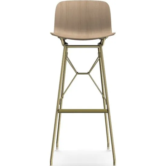 Stołek barowy Troy Wireframe naturalny drewniany ze złotą ramą
