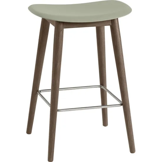 Stołek Fiber 65 cm szarozielony na ciemnych drewnianych nogach