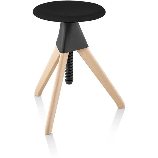 Stołek obrotowy Jerry rama naturalny buk siedzisko czarne