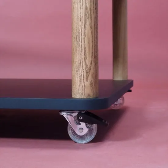 Stolik kawowy Ashme na kołkach, dostępny w wielu kolorach. Przestronna połka z łatwością pomieści większe przedmioty. Drewno jesionowe, laminowana i lakierowana płyta MDF.