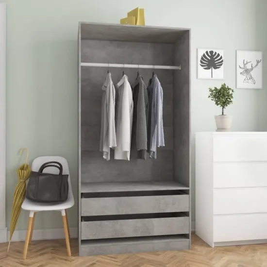 Kompaktowa szafa znacznie ułatwia dostęp do ubrań i akcesoriow. Zapewni doskonałe rozwiązanie w kwestii przechowywania i będzie szykownym dodatkiem do wystroju Twojego domu. Szafę wykonano z płyty, ktora zapewnia solidność, trwałość oraz długą żywotność mebla. Zawiera ona 2 szuflady i 1 dużą przegrodę z drążkiem na wieszaki, zapewniając sporo miejsca zarowno na dłuższą odzież, jak i inne, złożone ubrania lub akcesoria, takie jak swetry, dżinsy, czapki, torby itp. Cała powierzchnia jest łatwa w utrzymaniu w czystości. Szafa jest prosta w montażu.Kolor: betonowy szary Materiał: płyta wiorowa Wymiary: 100 x 50 x 200 cm (szer. x gł. x wys.) Z 2 szufladami 1 duża przegroda z drążkiem na wieszaki Drążek na wieszaki Takgłębokość 50 cmKolor betonowy szaryLiczba Szuflad 2Materiał płyta wiorowaSzerokość 100 cmWaga 62 kgWysokość 200 cm