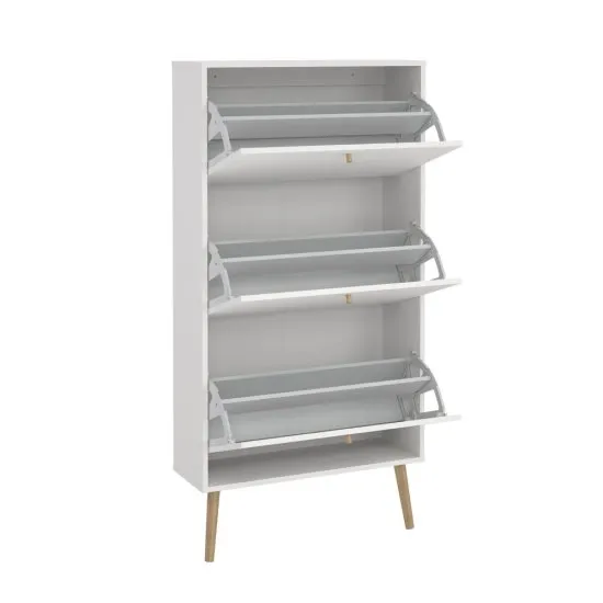 Szafka na buty Bodo to smukła elegancja w służbie porządku. Jej kompaktowa forma, wykończenie w białym macie i subtelne, drewniane detale sprawiają, że staje się nie tylko praktycznym, ale i stylowym dodatkiem do każdego przedpokoju.