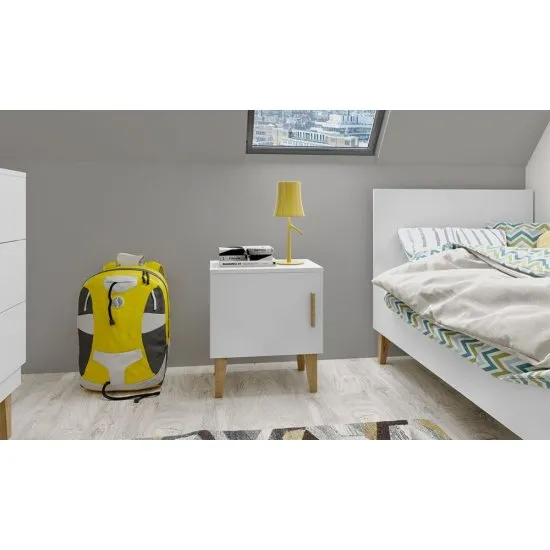 Szafka nocna wydaję Ci się zbędnym meblem w pokoju dziecka czy nastolatka? Ale czy na prawdę tak jest? Szafka nocna From to mebel idealny zarowno do pokoju młodzieżowego jak i mniejszego dziecka. W przypadku nastolatka jest to doskonałe rozwiązanie by chaos przy łożku przeniosł się do wnętrza i na stolik nocny, zaś w przypadku mniejszej pociechy szafka stanie się praktyczną pomocą dla rodzica. To idealne miejsce by ustawić lampkę jeśli dziecko boi spać się w ciemności, odłożyć książkę czy zostawić wodę lub ostawić butelkę. Szafka From jest stylistycznie uniwersalna, dlatego z łatwością wkomponuje się w każdy pokoj czy to dziecięcy czy nastolatka.