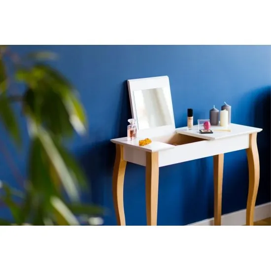 Wersję ze schowkiem możesz postawić w przedpokoju, aby ukryć klucze lub rękawiczki po blatem. Dyskretny schowek oraz lusterko są dużymi atutami tego mebla, dzięki czemu idealnie pasuje do sypialni jako toaletko-konsola.