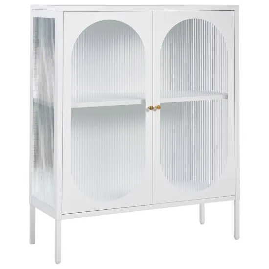 Witryna dwudrzwiowa metalowa biała Sarre to elegancki i funkcjonalny mebel, ktory doskonale sprawdzi się w rożnych wnętrzach, dodając im lekkości i nowoczesnego charakteru. Pasuje zarowno do industrialnego biura, jak i nowoczesnego salonu czy minimalistycznie urządzonego mieszkania.Wysokiej jakości metalowa konstrukcja witryny gwarantuje jej trwałość, natomiast lakierowana na biało powierzchnia dodaje jej elegancji. Przeszklone boki oraz drzwi zachwycają, tworząc stylowy wygląd, a także umożliwiają wyeksponowanie przechowywanych w witrynie przedmiotow. Wnętrze witryny zostało podzielone na trzy komory, ktore oferują dużo miejsca do przechowywania. Dzięki temu, mebel ten jest nie tylko estetyczny, ale rownież praktyczny, umożliwiając uporządkowanie i wyeksponowanie rożnych przedmiotow.Witryna jest postawiona na smukłych nożkach oraz wyposażona w uchwyty w białym kolorze, co podkreśla jej lekkość i nowoczesny design. To idealne rozwiązanie dla osob poszukujących eleganckiego i zarazem praktycznego mebla do swojego wnętrza. Cechy produktu:Elegancki i nowoczesny designWykonana z wysokiej jakości metalu, lakierowanego na białoPrzeszklone boki oraz drzwi dla efektownego wyeksponowania przedmiotowPodział wnętrza na trzy komory, oferujące dużo miejsca do przechowywaniaPostawiona na smukłych nogach, podkreślających lekkość meblaIdealna do rożnych wnętrz, takich jak biuro, salon czy mieszkanie głębokość 35 cmKolor BiałyLiczba drzwi 2Liczba komor 3Materiał Stal SzkłoRodzaj nog SmukłeSzerokość 90 cmWysokość 111 cm