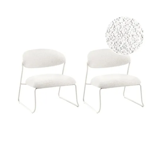 Zestaw dwoch foteli bez podłokietnikow łączy nowoczesną estetykę z codzienną funkcjonalnością. Solidna metalowa konstrukcja zapewnia stabilność, a miękkie, tapicerowane trwałą tkaniną siedziska gwarantują wygodę na lata. Prosta, elegancka linia sprawia, że fotele doskonale wpasują się zarowno w salon, jak i w sypialnię, tworząc uniwersalne i przyjazne miejsce do siedzenia.głębokość 61 cmKolor Złamana bielMateriał metal tkaninaSzerokość 64 cmWysokość 71 cm