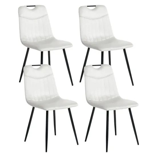Ten zestaw krzeseł do jadalni to połączenie komfortu, funkcjonalności i ponadczasowego stylu glamour. Praktyczny uchwyt w oparciu sprawia, że łatwo je przestawiać, gdy zajdzie taka potrzeba. Miękka, welurowa tapicerka w połączeniu z eleganckim pikowaniem dodaje wnętrzu luksusowego charakteru, a solidne metalowe nogi gwarantują trwałość. Uniwersalna forma sprawia, że krzesła świetnie odnajdą się zarowno w jadalni, jak i salonie – bez względu na styl aranżacji.głębokość 55 cmKolor Złamana bielLiczba krzeseł 4Materiał metal WelurMateriał nog MetalModel ARGYLESzerokość 45 cmWysokość 86 cm
