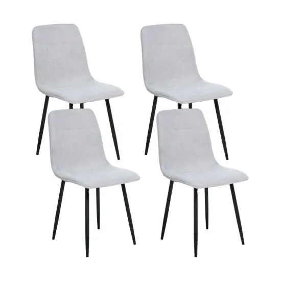 Odmień wygląd swojej jadalni dzięki temu stylowemu zestawowi 4 krzeseł. Miękka, wysokiej jakości tapicerka zapewnia komfort siedzenia, a smukłe, czarne nogi z żelaza dodają nowoczesnego charakteru i zapewniają stabilność. Brak podłokietnikow oraz neutralna kolorystyka sprawiają, że krzesła idealnie pasują do każdego wystroju jadalni.głębokość 58 cmKolekcja TUSCOLAKolor jasnoszaryKolor nog CzarnyLiczba krzeseł 4Materiał żelazo tkaninaMateriał nog ŻelazoPodłokietniki brakPrzeznaczenie JadalniaSzerokość 46 cmWysokość 88 cm