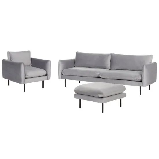 Zestaw wypoczynkowy z otomaną.Nowoczesny zestaw wypoczynkowy z kolekcji Vinterbro będzie stylowym dodatkiem do nowoczesnego wnętrza w minimalistycznym stylu. Duża sofa z otomaną została obita miękkim w dotyku, szarym welurem i wypełniona pianką dla maksymalnej wygody. Proste, czyste linie podkreślają nowoczesny styl mebla. Zestaw wypoczynkowy z kolekcji Vinterbro będzie doskonałym wyborem do przestronnych salonow.nowoczesny designszary kolormateriał: welur SuperWnętrze to miejsce, w ktorym znajdziesz rożnorodne produkty do wyposażenia i dekoracji wnętrz. Nasz asortyment obejmuje szeroki wybor mebli, oświetlenia, tekstyliow oraz akcesoriow, ktore pomogą Ci stworzyć wymarzone wnętrze. Oferujemy produkty w rożnych stylach, od klasycznego po nowoczesny, dzięki czemu każdy znajdzie coś dla siebie. Naszym celem jest dostarczanie wysokiej jakości produktow, ktore łączą w sobie funkcjonalność i estetykę. Zapraszamy do odkrywania inspirujących rozwiązań dla Twojego domu w SuperWnętrze. Kolekcja VinterbroKolor SzaryMateriał WelurStyl nowoczesny